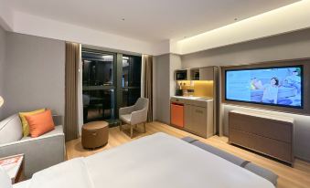 住得超滿意!前台lily超貼心,主動升級房型,房間乾淨床好睡,綠洲大堂的自助飲吧24小時能喝到咖啡,房間帶微波爐和小冰箱超實用,房間整潔明亮,現代設施一應俱全。地理位置優越,距離萬達廣場就幾百米,周邊餐飲豐富。細節處理到位,各用品用品都體現品質追求,性價比超高,強烈推薦