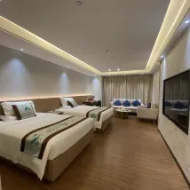 The hotel is quite new, the pillows are very comfortable, especially the hard functional pillows, the bathroom supplies are complete, there is a beauty mirror with a beautiful appearance, there is an intelligent voice system, there is a reception room next to the room, you can invite a few friends to drink tea and chat together, it is free to use, and someone will help dry the washed clothes and deliver them to the door. Next time I will choose your hotel again.