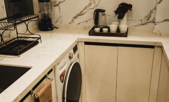 You can take care of all your laundry needs with the washing machine and Iron provided.
