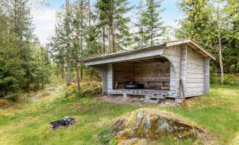 Holiday development "Rödmossa Femton", surrounded by trees. 4 km from the centre of Virserum, 50 km from the centre of Vimmerby, on a slope, 200 m from the lake, 15 km from the river, in a cul-de-sac. For shared use: natural state property 1'000 m2, garden (not fenced) with trees. Private: natural state property 400 m2, garden (not fenced) with trees. Terrace, garden furniture, barbecue. Available: boat. Parking on the premises. Shop 4 km, supermarket 40 km, bus stop "Rödmossa" 300 m, railway station "Vetlanda" 40 km, ferry "Helsingborg" 256 km, grass beach 4 km, indoor swimming pool 60 km. Golf course (18 hole) 60 km. Free fishing. "Rödmossa Femton", 2-room house 35 m2. Object suitable for 4 adults. Bright, beautiful furnishings: living/sleeping room with winter garden with 1 double sofabed, TV, CD-player and DVD. 1 room with 1 double bed. Open kitchen (4 hot plates, oven, microwave, freezer, electric coffee machine) with dining table. Exit to the veranda. Shower/WC. Electric heating. Wooden floors. Facilities: iron. Please note: non-smokers only. Freezer approx. 70 l.