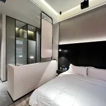 This hotel is so suitable for young people! It completely captures my aesthetics. The large projection allows people to have a great movie-watching experience while traveling, and you can watch movies for free. Watch movies at will. Every detail is full of fashion and the photos are very photogenic. There are also slippers for children with ear plugs. This kind of heart-warming supply makes people very attentive and considerate. It feels so awesome to have a bath in the pool!! Especially when you come back after playing for a day and take a bath. I felt so peaceful while looking out the window. There is also a small bar downstairs where you can have a drink with friends.