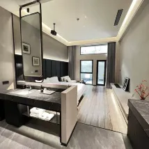 This hotel left a deep impression on people, with an elegant environment and a modern yet warm design. The room is spacious and bright, with high floor height and exquisite decoration. The bed is very comfortable and allows people to completely relax. The hotel's facilities are complete. The gym, chess and card room, bar and soup pool are all kept very clean. It is a good place for relaxation and leisure. The breakfast is also very special, rich in content and fresh ingredients. The hotel's service staff are professional and friendly, always smiling and able to solve problems in a timely manner. Overall, this is a highly recommended, high-quality hotel with great value for money. The hotel is very close to Taihu Lake, Moon Bay and Fisherman's Wharf, and is close to the landmark building of Moon Bay. The hotel is particularly elegant and refined, very stylish and has a high-end feel. The staff's attitude is very friendly, and the hotel staff are considerate every step of the way. The hotel room is spacious, the bath water is large, the bedding is very comfortable, and the lighting is soft. The hotel is right on the roadside of Taihu Lake, very close to Taihu Ancient Town and Wuyue Plaza, and has a complete range of shopping, dining, and entertainment options.