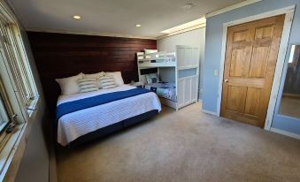 We stayed here with grandma and grandpa and our family of 4. Loved that the one bedroom on the main level was a little separated from the upper rooms so grandma and grandpa could have their own private space away from our noisy kids!Everything we needed was provided at the house, and appreciated being able to use the water toys as well as having access to a whole bin of beach toys! Fishing was great- caught pike every day. Short drive in to town and great location. Would absolutely recommend to others!