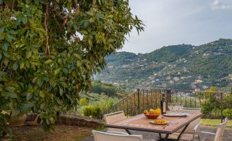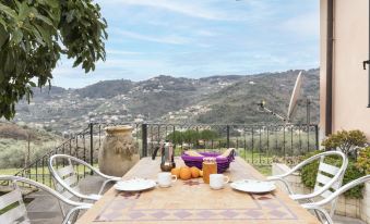 Villa "Costadoro", surrounded by trees and meadows. 4 apartments in the residence. In the district of Costadoro 3.5 km from the centre of Imperia, 8 km from the centre of Diano Marina, 30 km from the centre of San Remo, in a secluded, sunny, elevated position on top of a hill, 4 km from the sea, in the countryside. For shared use: large, beautiful, well-kept garden 12'000 m2 (fenced) with plants and flowers, orchard. Patio, garden furniture, barbecue. In the house: washing machine (for shared use). Parking (for 6 cars) on the premises. Grocery 200 m, supermarket 2.5 km, bar 200 m, bus stop 1.9 km, sandy beach "Imperia" 4 km. Walking paths from the house 100 m, cycle lane 4 km. Nearby attractions: Monte Carlo Monacco 52 km, Cervo 8 km. Please note: car recommended. "Coty (IMP522)", 3-room apartment 55 m2, on the ground floor. Bright, beautiful and cosy furnishings: small living/dining room with dining table, TV and forced-air heating. 1 room with 1 french bed (160 cm). 1 room with 2 beds (80 cm). Open kitchen (oven, dishwasher, 4 gas rings, toaster, freezer, electric coffee machine) with dining table. Shower/WC. Heating. Heating available only from 01.11. to 01.04. Patio. Terrace furniture, barbecue (portable). Very beautiful panoramic view of the valley and the countryside. Facilities: washing machine, children's high chair, hair dryer. Internet (WiFi, free). Parking (fenced). Please note: non-smokers only. Maximum 1 pet/ dog allowed. IT008031C2H97Q2YO4