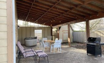 Roomy 2-Story house ideal for large families and groups. Pet-friendly with covered outdoor space and hot tub and recently fully fenced in! Central location - only 1.5 miles to Western OR University and downtown Monmouth and Independence; within walking distance to several restaurants and grocery stores. Very large kitchen and dining space for group meals. Comfy couches and 4 king beds plus a bunk with 2 full beds to relax! Double driveway and garage for parking. This simple, but sweet home is sure to accommodate your crew. About pets:Pets allowed.About checkOut:Check out before 11:00 AM.About children:Children allowed: ages 0-17.About checkIn:Check in after 4:00 PM.About smoking:Smoking is not permitted.About minBookingAge:Minimum age to rent: 1.About events:Events allowed.