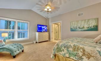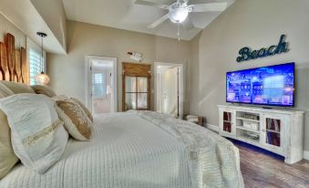 -2nd master suite depicts a seaside paradise with a King bed accentuated by a custom coastal headboard (Jeff & Gina created this statement piece themselves).