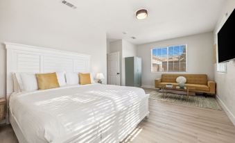 This modern, newly renovated, resort-style vacation home is luxury living at its best! This 2500 sq. ft., single story vacation home is the perfect relaxing getaway with family and friends. A spacious, private backyard that is fully enclosed with a newly constructed large heated pool & spa, fire pit, sun beds, comfortable lounge area, grill, 4-hole putting green, indoor & outdoor dining, a game room with pool, ping pong, foosball, dartboard and board games. Unforgettable memories are made here!