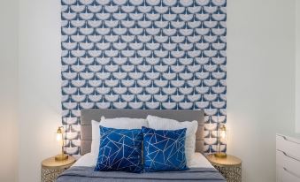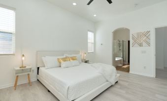 The Master ‘Yellow Room’, provides a beautifully designed space to rest at the end of the night. It provides a wonderful night’s sleep with a plush 12” memory foam King Bed and cotton bedding. It has a master en-suite full bathroom which has a stand up shower, soak tub, double sinks and walk in closet.