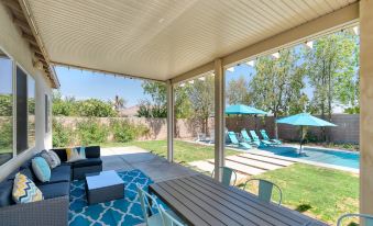 This completely renovated backyard is a vacation Haven! It has a newly built pool and spa. The spa is one of the biggest ones in any private backyard, it is 5 x 12 ft and can fit up to 10 + family and friends. Rest by the new pool loungers while enjoying a refreshing drink by the pool side. Stay cool under the jumbo umbrellas while basking in the desert sun. Gather around the modern firepit to share endless stories in the Adirondack chairs. Cook up your favorite steak and veggies on the new Stainless Steel BBQ grill and enjoy an outdoor meal in the new mid century modern dining table/chairs. Enjoy lawn games, including lawn pickle ball, and ping pong outdoors. Wrap up the night by enjoying a night cap around the outdoor couch and string lights, this is your Desert Haven!