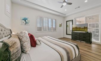 TV and complimentary high-speed WiFi. The kitchen comes equipped with essential appliances, including a refrigerator, microwave, oven, stove, Keurig coffee maker, toaster, blender, crockpot, and handheld mixer, and much more! We have everything and anything and if there is something we don't have please don't hesitate to ask we will try to get it to you during your stay! There’s also an extra refrigerator in the garage for your convenience.