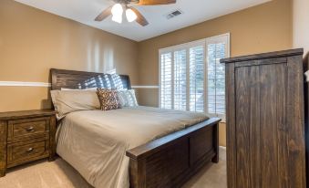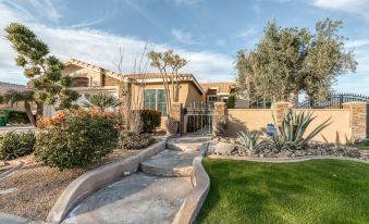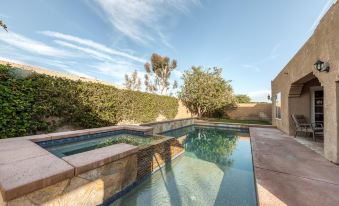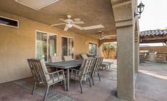 If a relaxing getaway is what you need, this tranquil family-friendly retreat is the perfect place! With its indoor/outdoor living space, there is something for everyone. Spend the day floating in the refreshing pool or bask in the desert sun. Challenge your friends and family to a friendly game of pool or Ping-Pong, or relax assembling one of the puzzles available. For meals, you can choose to BBQ on your private grill within the kitchen island or inside with the fully equipped kitchen. You may choose to dine indoors or outdoors, as there is plenty of room. To end the day, soak in the bubbling spa or sit around the firepit under the stars.