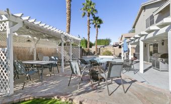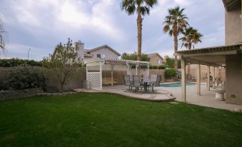 This home has been fully renovated on the inside and out also equipped with all brand new Kitchen Aid appliances and all brand new furniture through out the whole house. Home is located in a quiet neighborhood on a large corner lot that features 5 bedrooms 3.5 baths with pool & spa that can comfortably accommodate 10 people. All rooms have smart TV's. Large back yard with covered built in BBQ for entertaining, sunken fire-pit and big grassy side yard. The home is less 1.5 miles away from Coachella, Stagecoach and 4 miles away from the Indian Wells Tennis gardens. HITS horse is 8.5 miles away. There's a grocery and drug store less then a mile away with a bunch of restaurants as well.About pets:Pets allowed: dogs less than 20 lbs per pet (limit 2 pets total).About checkOut:Check out before 10:00 AM.About children:Children allowed: ages 0-17.There is a pool and stairs.About checkIn:Check in after 4:00 PM.About smoking:Smoking allowed: in designated areas.Smoking is allowed only outside.About minBookingAge:Minimum age to rent: 24.About events:Events allowed: family gatherings and birthday parties.Maximum event attendees: 22,Must advise before booking.