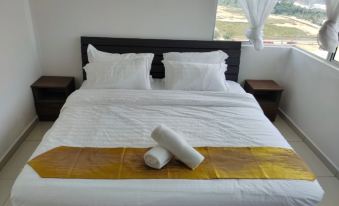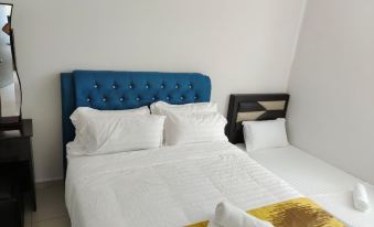 This apartment is located at Bandar Meru Raya, Ipoh, Perak. This Aparment consists of a living room with sofa, tv, ceiling fan and aircond, 3 bedroom, kitchen with water dispenser and refrigerator, and the dining area with table and chairs. The master room is consists of a King Size Bed, wardrobe, ceiling fan, aircond and private bathroom, The other 2 rooms, each consists of 1 standard double bed, 1 single bed, ceiling fan and aircond. Washing machine, Eletric Iron, Hair blower, water heater, shower and shampoo gel, bath towels are provided.