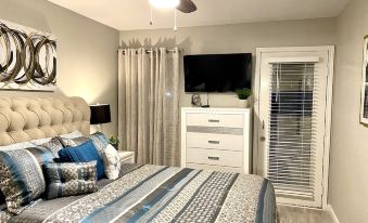 Luxury 1BD/1BA condo with a queen bed on the 1st floor of a peaceful, gated community. it features private yard space, high-speed internet, a pull-out sofa bed, a new in-unit washer/dryer, and access to a community pool. Surrounded by local attractions like Towne Lake Park, Irving Mall, Las Colinas Urban Center, the Mandalay Canal Walk. This condo provides easy access to HWY 183 and HWY 114. Review the 'OTHER THINGS TO NOTE' section for more.