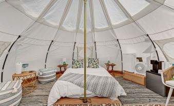 Discover the ultimate glamping escape at our serene Ischua Creek location. Our Stargazer offers a 360-degree view of the sky in our luxe tent.