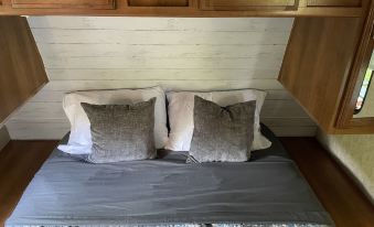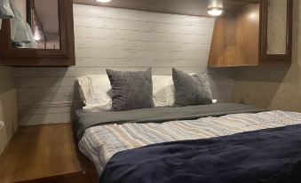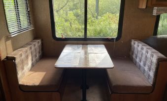 Our RV has a Queen-size memory foam mattress and two twin-size bunk beds. There is a fridge, stove, Keurig, and a fully equipped kitchen. There is heat, A/C, shower, and flushable toilet. You may bring or rent your own kayak or fishing gear and revel in the creek's natural beauty.