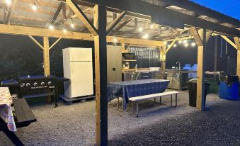 The outdoor area is complete with a picnic table and a propane grill. There is a fire pit with four lawn chairs. Please do not bring your own campwood. We sell bundles of dry firewood. So sit back, relax, and enjoy the warmth of a cozy campfire without any hassle.