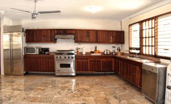 Casa de la Playa offers large oversized rooms including 6 plush suites each with en-suite bathroom and private terrace.The home is enhanced throughout with marble floors, exotic tropical woods, and functioning plantation shudders. The spacious kitchen is fully equipped with top of the line appliances.