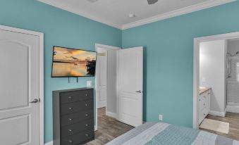 3 bedrooms: 2 bunk beds and 1 queen bed