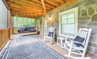 We were so pleased with the property! Located just outside of downtown Cashiers our family of 5 had plenty of space. Everything was so neat and clean upon arrival. The bathrooms and appliances all updated. The owners could not have been nicer or easier to communicate with. The kitchen is well equipped and there is a trail off the backyard that leads to a little waterfall. We spent a lot of time outside on the covered patio! A nap or two may have been taken on the swinging porch bed.