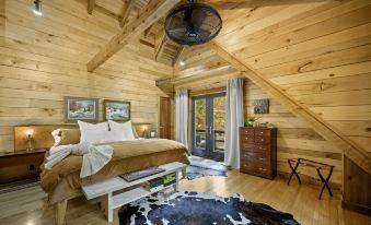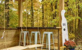 The cabin boasts 2200 sq. feet of well designed and appointed comfortable interior furnishings. A gourmet kitchen is stocked for cooking with all essentials. Complimentary coffee & tea from Brown County Coffee - loose leaf teas from Nelson's Teas are located in a stocked coffee bar armoir. Celebrating a special occasion? Have a custom cake, and celebratory banner placed, ask about pricing and options.