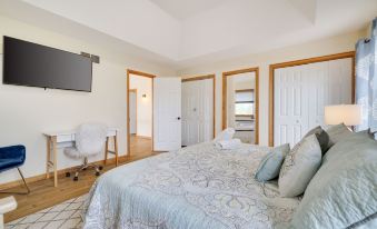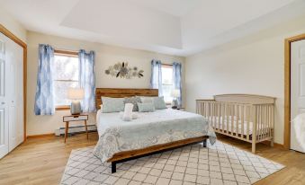 Master Bedroom with a king-size bed and a full-size crib (and a travel crib) is located on the second floor. Attached, the full master bathroom has a huge soaker tub. Bedrooms 2, 3, and 4, all with queen-size beds, are located on the second floor. A full-size bathroom is also located on the second floor.