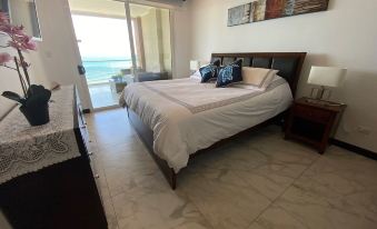 This is a BEACHFRONT condo located on the 13th floor with direct access to Jaco Beach. The condo features an oversized terrace (fully furnished: solid wood reclining chairs, dining set, patio furniture) where you can enjoy unrivalled views of Jaco Bay and take in the sunrises and sunsets.