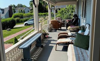 Beautiful "quiet Queen Anne" home close to the Village with large green lawns sweeping toward the sea on one of the largest lots in town (30,000 sq ft). Savor a classic summertime experience with recently renovated cook's kitchen designed in harmony with original Victorian era woodwork and charm. Wraparound porches for outdoor living include a screened side porch for dining, consistently cool ocean breezes, and panoramic views of Narragansett Bay from Newport Pell Bridge to Newport Harbor. Short 4 minute walk to East Ferry shops, restaurants, and beaches. Views from your private porch of the July 4 fireworks and frequent sailing races. Spectacular second floor "lookout" on spacious landing between the bedrooms. Rooms can be rearranged upon request with different bed configurations to suit your family's needs. Ample street and off-street parking (shared with separate cottage in rear of property); privacy hedges; enclosed outdoor shower; outdoor grill. Well behaved dogs of any size are welcome; invisible fence and compatible collars available if desired.