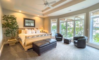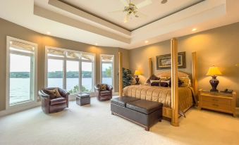 There is a very Private King Suite with wonderful lake views at the other end of the Lower Level. The Lower Level Covered Deck has great views of the Lake and a new 9 Person Master Spa Hot Tub for this Season open year round!