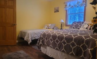 The cottage is equipped with pretty much everything you would need for cooking and the beds are all ready for a good night sleep with black out blinds. On the cold night there is a cozy wood stove to keep you warm or on the hot nights enjoy air-conditioning in the bedrooms. There is a loft with 2 cot mattresses and a couple air mattresses that kids really enjoy. The bedroom with 2 twins can also be made into a king bed if that fits your needs better