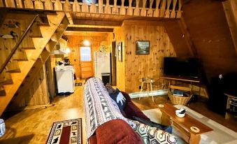 This charming chalet comes equipped with all the essentials to make your stay as comfortable as possible. You'll find one bedroom and a loft, perfect for sleeping up to four guests. The interior features wooden finishes and rustic décor, capturing the essence of cabin living.