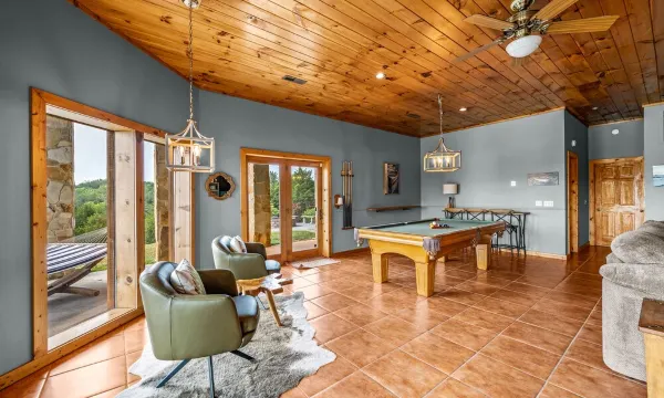 A full basement recreation room with 65 inch smart TV, pool table and karaoke machine will entertain your group while maintaining the fantastic lake and mountain views from that space.