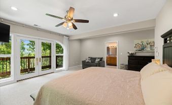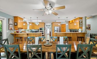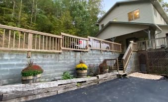 Large family? No problem, double-sized fully stocked kitchen and huge dining table inside or 18+ outdoor seats allows everybody to relax and enjoy meals together. On the main level deck, a three door commercial cooler ensures you will never run out of refrigerator space. (This feature is also the inspiration for the home's name, "Hillbilly Hollow"; because you can't be a hillbilly without a fridge on the porch.)