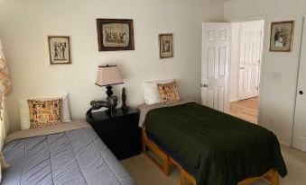 4 bedrooms: 2 single beds 2 queen beds and 1 king bed