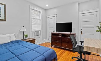 Enjoy a stylish experience at this centrally-located place. The house is 10mins away from journal square path train & bus lines,30mins into manhattan, each room has a computer desk for the traveling professional, closet space & chest drawer, free wi-fi & internet. Two full bathrooms, huge modern state of the art kitchen & garden backyard space