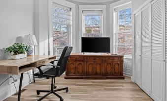 Each guest has their own private room with a queen size bed, computer desk & chest drawer & a closet. There is a 43" flat screen tv in each room, free wifi & internet. There r two full bathrooms, one bathroom is attached to one of the rooms on the 2nd floor & the other bathroom is in the hallway & has 2 be shared with the other guests, there is also a dining area downstairs next to the kitchen area & a garden backyard space