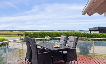 Single-family house, built in 2005. Private: property 808 m2, well-kept garden. Barbecue. In the house: trampoline, washing machine. Parking at the house. Grocery 1.3 km. Golf course 1.3 km. The owner does not accept any youth groups. "Annrike" - 175m to the fjord", 2-room house 93 m2. Object suitable for 5 adults. Living room with TV and radio. 1 room with 2 sofabeds. 1 room with 1 x 2 bunk beds. Kitchen (oven, dishwasher, 4 induction hot plates, microwave, freezer). 2 showers/WC. Of the bay. Facilities: children's high chair. Internet (WiFi). Please note: non-smokers only. Bookings accepted for holiday purposes only. 250
