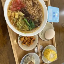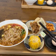 The rice noodles for breakfast at the B&B are particularly delicious, and hot fresh milk is provided in the evening. The room is spacious and the bed is very good to sleep on. There are almost no faults.