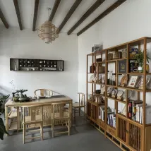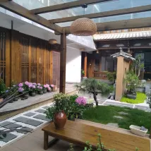 The new Chinese-style design inside the traditional house is simple and elegant, the rooms are spacious and comfortable, and full of greenery
