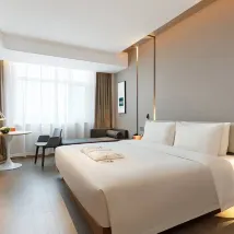 The pre-booked airport and subway station transfers were incredibly convenient; the driver was punctual and very friendly, which made my trips over the past two days thoroughly enjoyable. My room even had a mini-fridge, which was perfect for storing leftover local dishes since I was traveling solo. To top it off, the hotel restaurant kindly reheated my food for lunch! This was a truly fantastic experience!