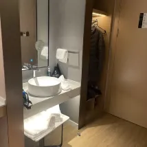 For a hotel at this price: the bed and sofa are good, and the bathroom has foot mats and towels which are beyond expectations. But there are no clothes hooks in the bathroom or wall which is inconvenient. The soundproofing was not good and I was woken up twice. There were two more pillowcases on the bed when we checked in.