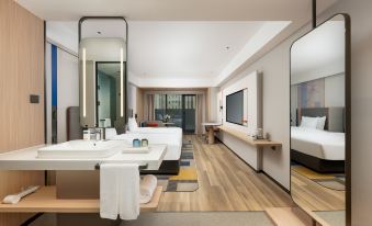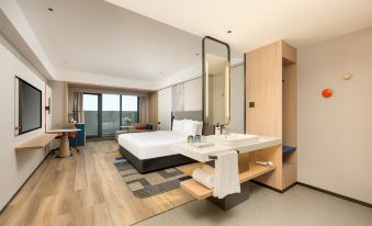 The hotel offers 151 Recharge Rooms with a modern, functional design, featuring soft and firm pillows, orthopedic mattresses, smart TVs with one-touch screen casting, electric curtains, multi-functional charging ports, and smart toilets. Bathrooms are dry-wet separated and equipped with large-bottle bath amenities. Facilities include a 160 sqm meeting room, fitness center, and a 24-hour self-service laundry room for guest convenience. Each morning, enjoy a Chinese and Western buffet breakfast with freshly ground coffee and the locally inspired “Signature Noodle,” recharging you for every journey.