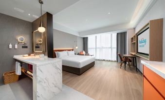 酒店服務熱情,衞生乾淨整潔,房間温馨寬敞,酒店位置優越,樓下就是一個商場,客房清潔人員也很親切,辦理入住在酒店一樓,很方便,大堂還有一個很萌的雕像,前台妹妹也很熱情,幫忙介紹周邊的景點,房間的價格也很實惠,性價比高!得到的不止一次舒適愉悦的入住體驗,還有人間煙火,超級推薦。