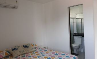 Large apartment (100m²), currently furnished and decorated, with 3 air-conditioned rooms (split air conditioning), all with double beds, drawers, hangers and nightstands, 1 suite and 1 social bathroom (all with electric shower), kitchen American type, Service area with 9kg washing machine and clothesline, dining room with table with 6 chairs and living room with sofa and TV with internet access (netflix, youtube, globoplay and others) and open channels, balcony .