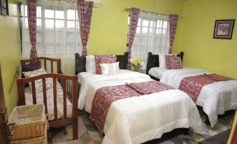 6 bedrooms: 4 single beds 1 queen bed and 1 king bed