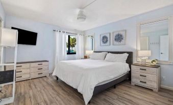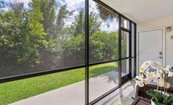 Best part is the condo is only 800 feet from the beach/ ocean. Great if you have a dog, as Jupiter beach offers a dog beach. This condo is located on the first floor and is directly across from the community pool. Personal parking spot is located directly in front of the condo unit. Has a private screened in patio. One bedroom (king size bed) , 1 full bathroom and a half bath. Full kitchen, dining area. Very comfortable for a couple. Tennis courts are on site as well.