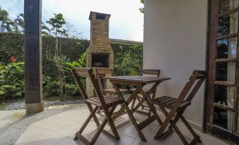 Comfortable house with 2 suites being one with double bed and one with two bunk beds, balcony with barbecue, kitchen with utensils, living room with t. v. cable and sofa bed, car parking space, ceiling fans in all rooms, safe house, cozy and airy, beach chairs and parasol, excellent location, close to Juquehy beach, shopping malls, restaurants, pharmacies.