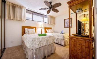 Second bedroom: This bedroom can be configured into two twin size beds or one King bed. Please specify which setup as soon as you book. This bedroom also has a TV, ceiling fan, and a dresser.