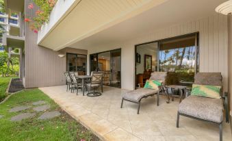 Kaanapali Alii 414 is a luxurious ocean-view vacation rental located in the heart of Maui's Kaanapali Beach. This spacious condo accommodates up to six guests with a well-designed layout two bedrooms and an enclosed sleeping den. The ground floor location of this condo allows for direct access to the stunning pools, beachfront grills, and the soft sands of Kaanapali Beach, enhancing the convenience and enjoyment of your stay. You can literally walk from your condo lanai out to the beach in 30 seconds!