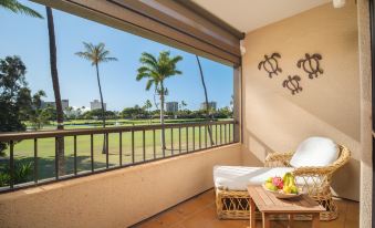 Your day begins and ends on the spacious lanai (lānai), where sweeping views of the lush Kaanapali Golf Course and the dramatic West Maui Mountains set the scene. Enjoy your morning coffee to the sound of birdsong or savor a sunset dinner under the remote-controlled sunshade—it's your sanctuary for connection and tranquility (hoʻomaluhia).
